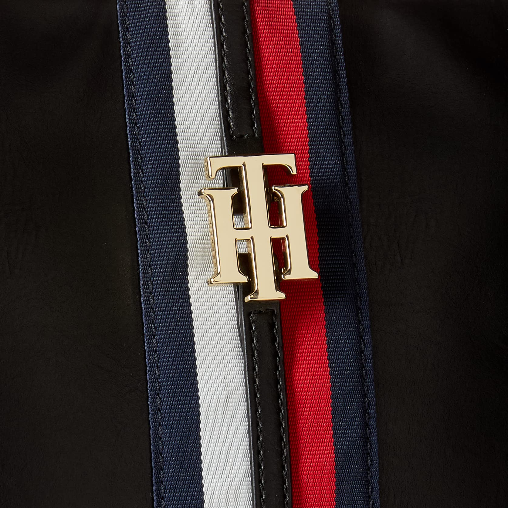 - TOMMY STYLE, TO GO: This must-have womens crossbody is polished off with the label’s signature logo stripe and glossy gold tone hardware featuring the TH medallion.
