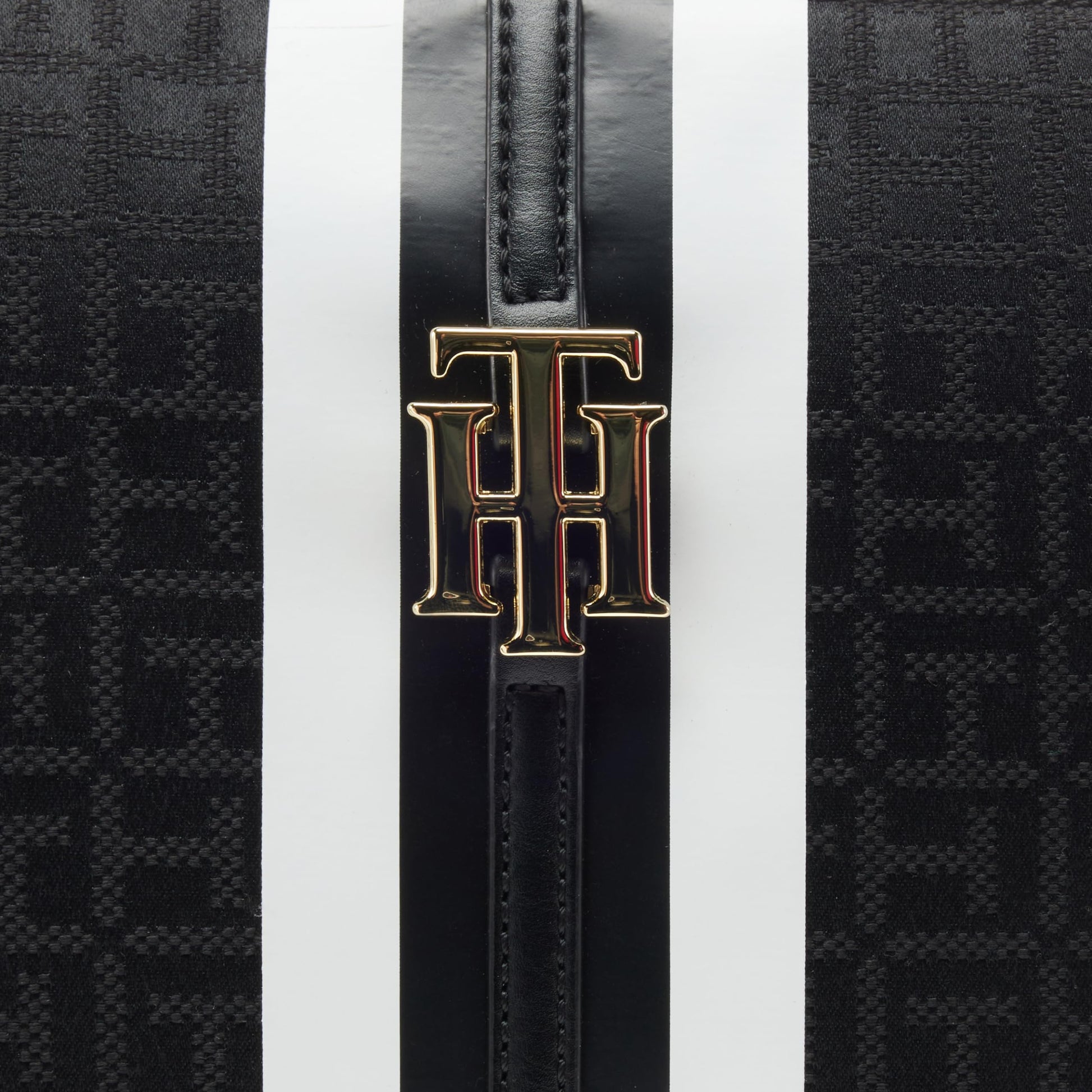 - TOMMY STYLE, TO GO: This must-have womens crossbody is polished off with the label’s signature logo stripe and glossy gold tone hardware featuring the TH medallion.
