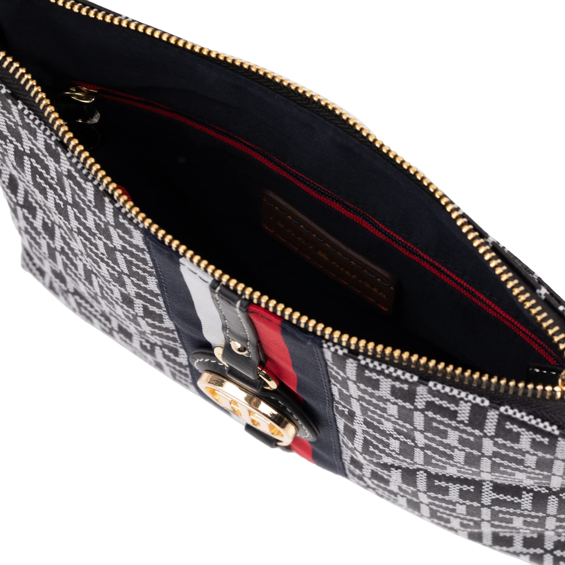 - TOMMY STYLE, TO GO: This must-have womens crossbody is polished off with the label’s signature logo stripe and glossy gold tone hardware featuring the TH medallion.